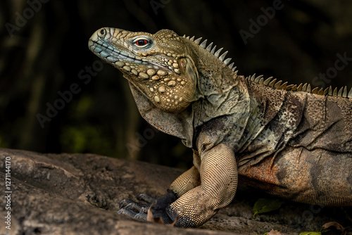 © Lauren, Fototapeta premium Blue Iguana (Cyclura lewisi) or Cayman Island Rock Iguana, is an endangered species of lizard which is endemic to the island of Grand Cayman.