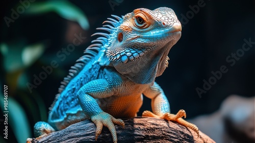 © AICraft, Obraz premium Blue Iguana Lizard on Branch