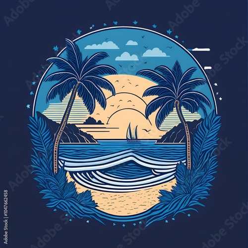 Obraz premium Blue Illustrated Beach Paradise Tshirt