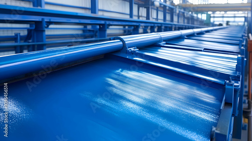 © HQAsset, Fototapeta premium Blue Industrial Conveyor Belt System in Factory