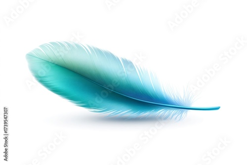 Obraz premium Blue iridescent feather resting on a white surface, creating a delicate...