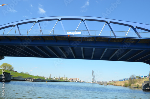 © lembrechtsjonas, Fototapeta premium blue iron bridge over canal