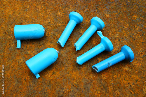 © Oilprakorn, Naklejka premium Blue iron rod on a rusted background for text