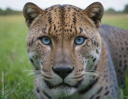 © Malih, Naklejka premium blue jaguar with blue eyes is in the grass.