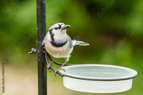 Obraz premium Blue Jay at Drinking Watering Bowl Bird Bath