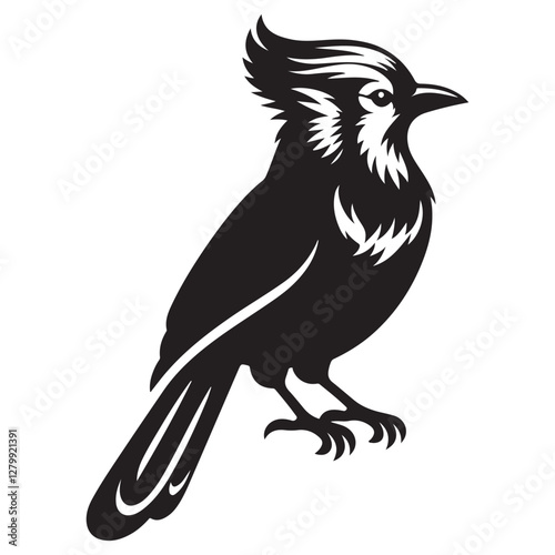 Obraz premium Blue Jay Bird Silhouette Vector Illustration, Solid White Background.
