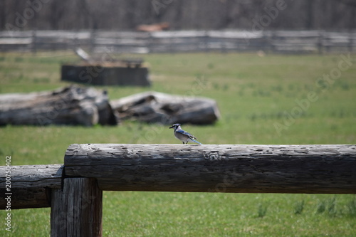 © MRoseboom, Fototapeta premium Blue Jay perched on a wooden post