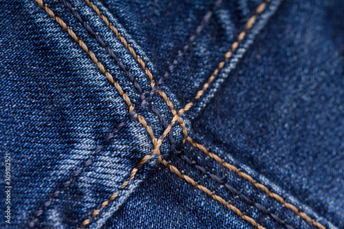 Fototapeta premium Blue jeans fabric texture with seam