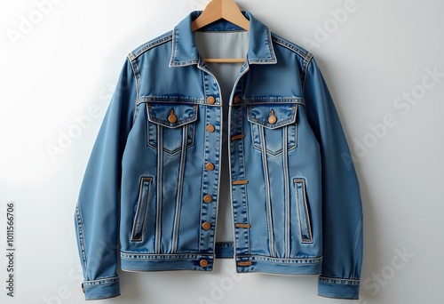 © Mahmudul, Naklejka premium Blue jeans jacket isolated on hanging