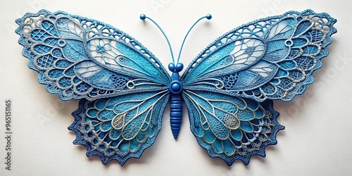 Obraz premium Blue Lace Butterfly - Crafted with Delicate Detail, Intricate Design, White Background, Butterfly, Lace, Blue