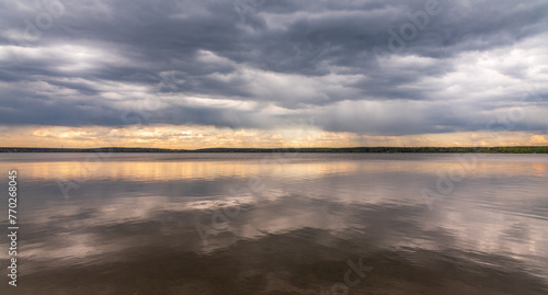 © Dmitrii Potashkin, Fototapeta premium Blue lake with cloudy sky, natural background
