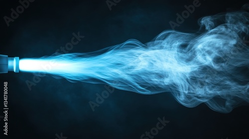 Fototapeta premium Blue Laser Beam Emitting Vapor Effect Against Dark Background