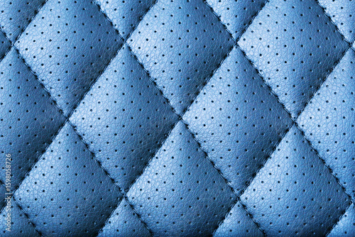 Obraz premium Blue leather texture pattern. Quilted textile material with stitching....