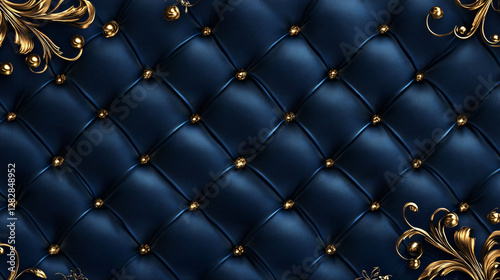 © Halfjoy, Obraz premium Blue leather upholstery with gold details presents elegance and luxury