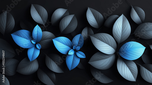 Obraz premium Blue Leaves on Black Background