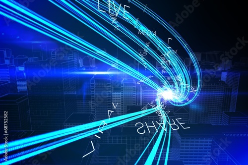 © WavebreakmediaMicro, Obraz premium Blue light beams over skyscrapers