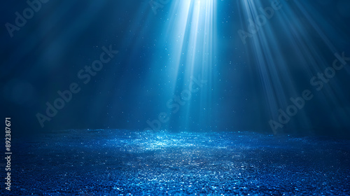 Fototapeta premium Blue light beams shining through water, creating a serene underwater scene.