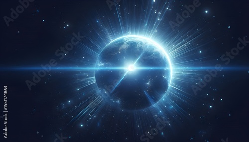 Obraz premium Blue light flare - flash light streak ray - large light flare behind the planet