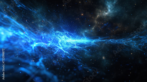 Fototapeta premium Blue light from a laser fires out of the black background.