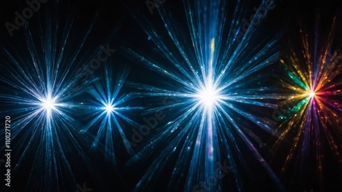 © Artem, Fototapeta premium Blue light prism rainbow flares on black background
