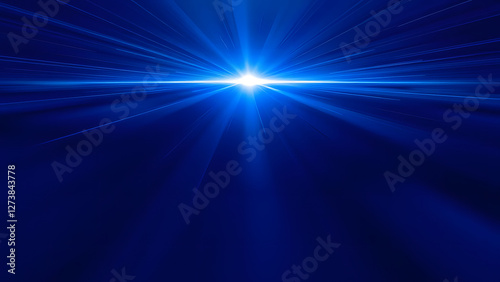 © edi, Obraz premium Blue light rays create a dynamic motion across the dark abstract backdrop