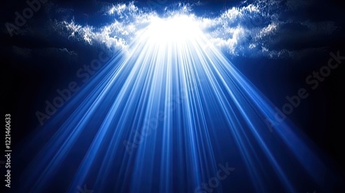 Fototapeta premium Blue Light Rays Emerging From Dark Clouds Dramatic Heavenly Background