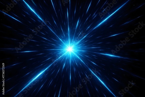 © Abdul Jalil, Fototapeta premium Blue Light Streaks Exploding From Center Keywords: abstract, background, blue, bright, burst