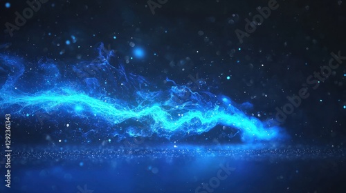 Fototapeta premium Blue Light Wave on Dark Background with Sparkling Particles