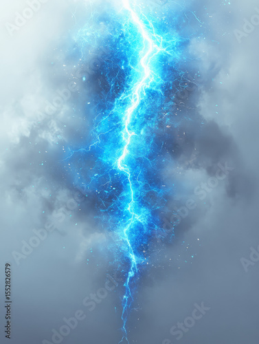 Naklejka premium Blue lightning in cloudy sky during a thunderstorm