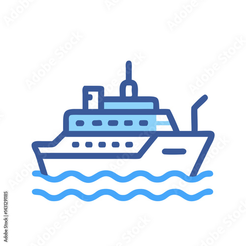 © Zahadur, Obraz premium Blue Line Art Yacht Illustration on Ocean Waves with Black Background