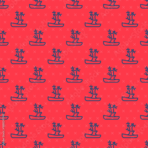 © Kostiantyn, Obraz premium Blue line Bare tree icon isolated seamless pattern on red background. Vector