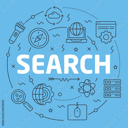 © goolliver25, Obraz premium Blue Line Flat Circle illustration search