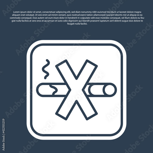 © vector_v, Obraz premium Blue line No Smoking icon isolated on blue background. Cigarette symbol. Vector