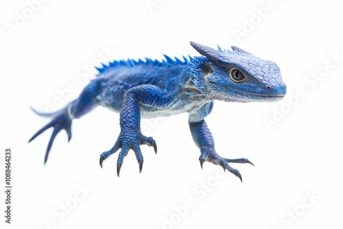 © jambulart, Naklejka premium Blue lizard with horns on white background.