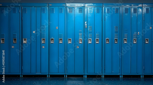 Fototapeta premium Blue Lockers in a School Hallway Photo
