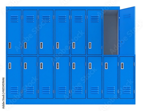 Fototapeta premium Blue Lockers Row, Open Door, Interior