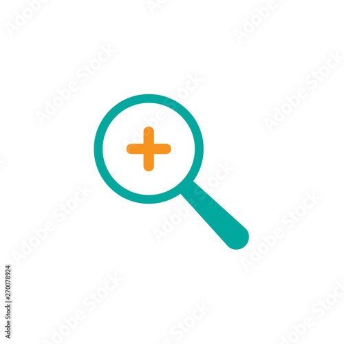 © Ne Mariya, Obraz premium Blue magnifier with plus sign isolated on white. Magnifying glass icon. Zoom button for web pages.