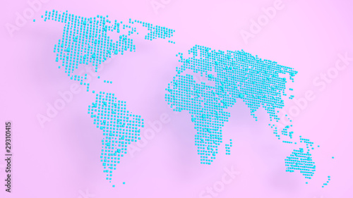 Fototapeta premium 0302_blue map block pixel on pink background 3D Render