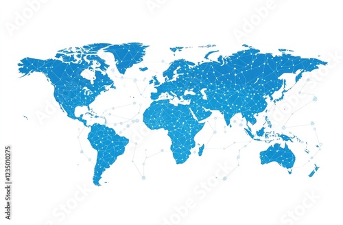 © Rock , Obraz premium Blue map of the world with global network connections on a white background