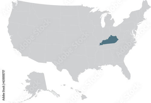 © Milos, Fototapeta premium Blue Map of US federal state of Kentucky within gray map of United States of America