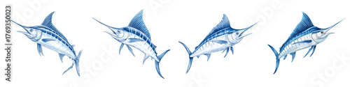 Fototapeta premium Blue Marlin Fish: Watercolor Illustration Collection on White