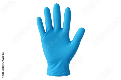 Obraz premium Blue medical glove showing five fingers on transparent background