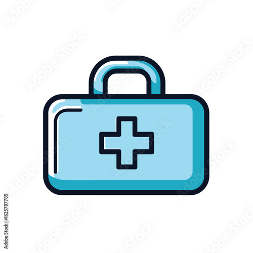 © Md Mojammel, Obraz premium Blue Medical Kit with Handle and Cross Isolated on White Background Icon Style