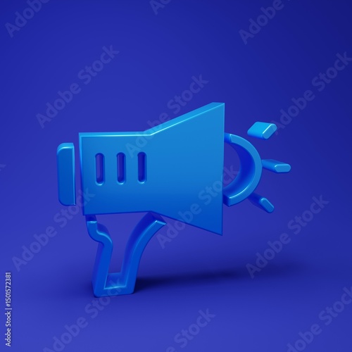© vector_v, Obraz premium Blue Megaphone icon isolated on blue background. Speaker sign. Minimalism concept. 3D render illustration