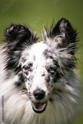Fototapeta premium blue merle sheltie dog detail of head