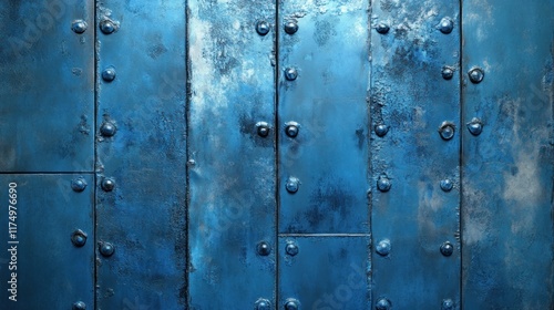 Fototapeta premium Blue Metal Panel with Rivets and Uneven Texture