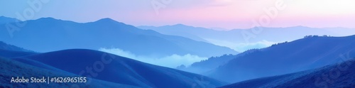 Fototapeta premium Blue mist swirls around rolling hills gentle terrain blending blue and purple...