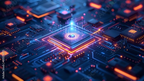 Fototapeta premium Blue Monochromatic Isometric Graphic with High-Tech Elements