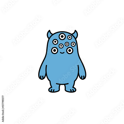 Fototapeta premium Blue Monster Icon Multiple Eyes Full Body Simple Design