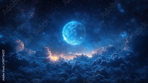 Obraz premium Blue moon, starry night, cloudy sky.